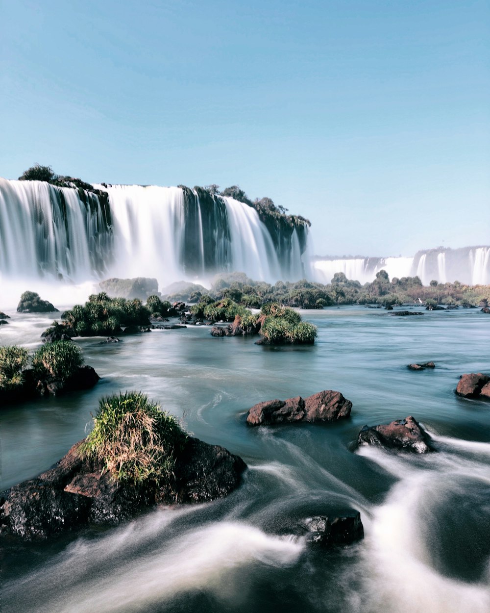 Waterfalls Under Clear Sky During Daytime Digital Wallpaper Photo