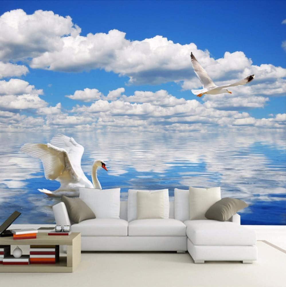 3d Wallpaper Hd Swan Seagull Blue Sky And White Clouds Sea Sofa Tv
