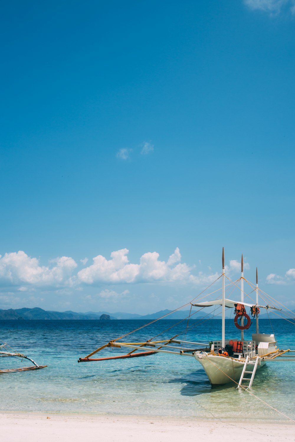 This photo is about vacation water watercraft. Water seashore sea beach blue background 1920x1080px download. This free image original size is 3872x2176 a 4k image file size is 151mb you can download it as wallpaper white and blue wooden chair free image peakpx pikrepo location. White and red boat on beach during daytime.