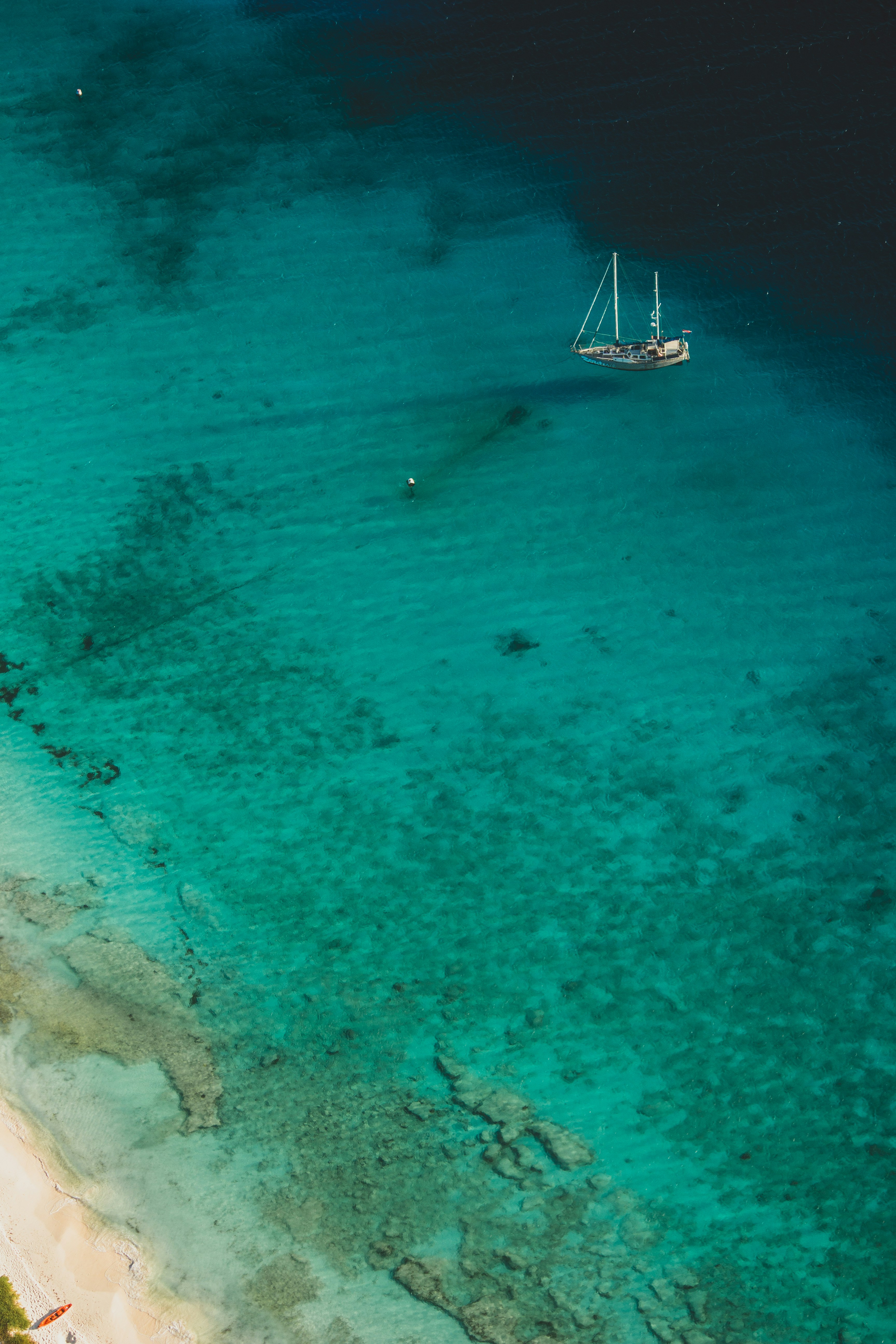 Hd Wallpaper Aerial View Of Boat On Sea Beside Rock Formation At Daytime Aerial View Of White Boat On Body Of Water Surrounded Gray Concrete Mountain Rocks Wallpaper Flare