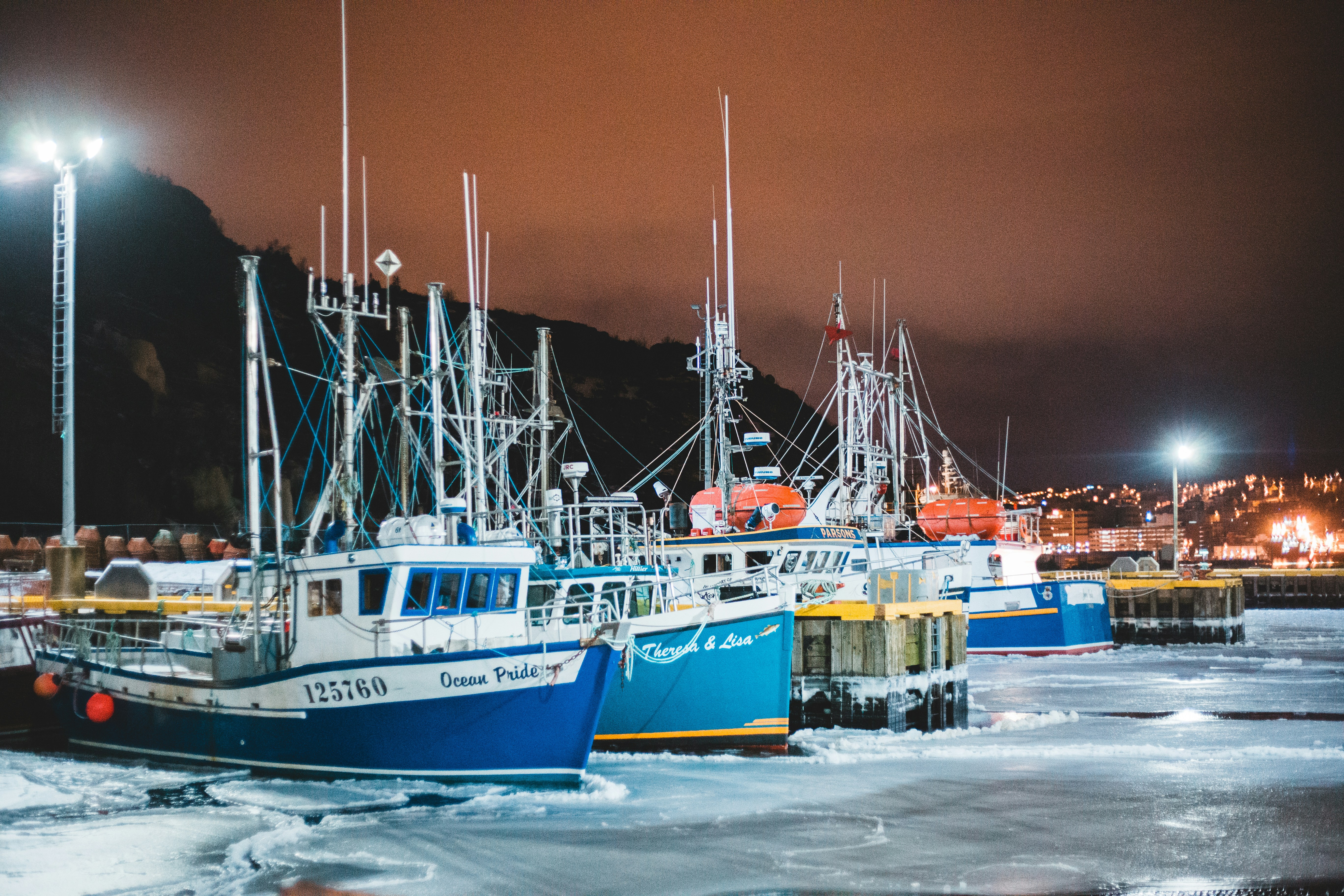 Fishing Boats On Sea During Nighttime Photo Free Transportation