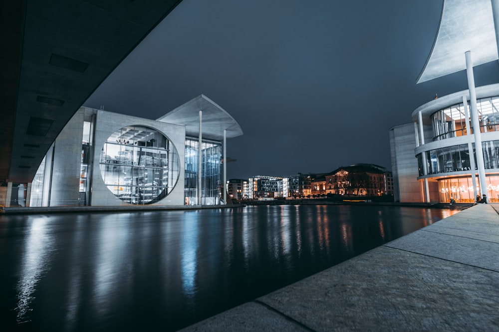 White And Brown Concrete Building Near Body Of Water During Night