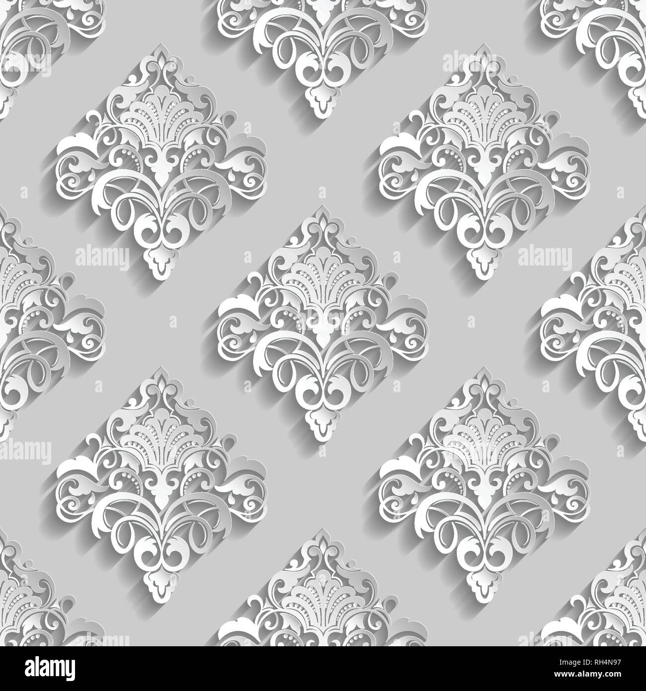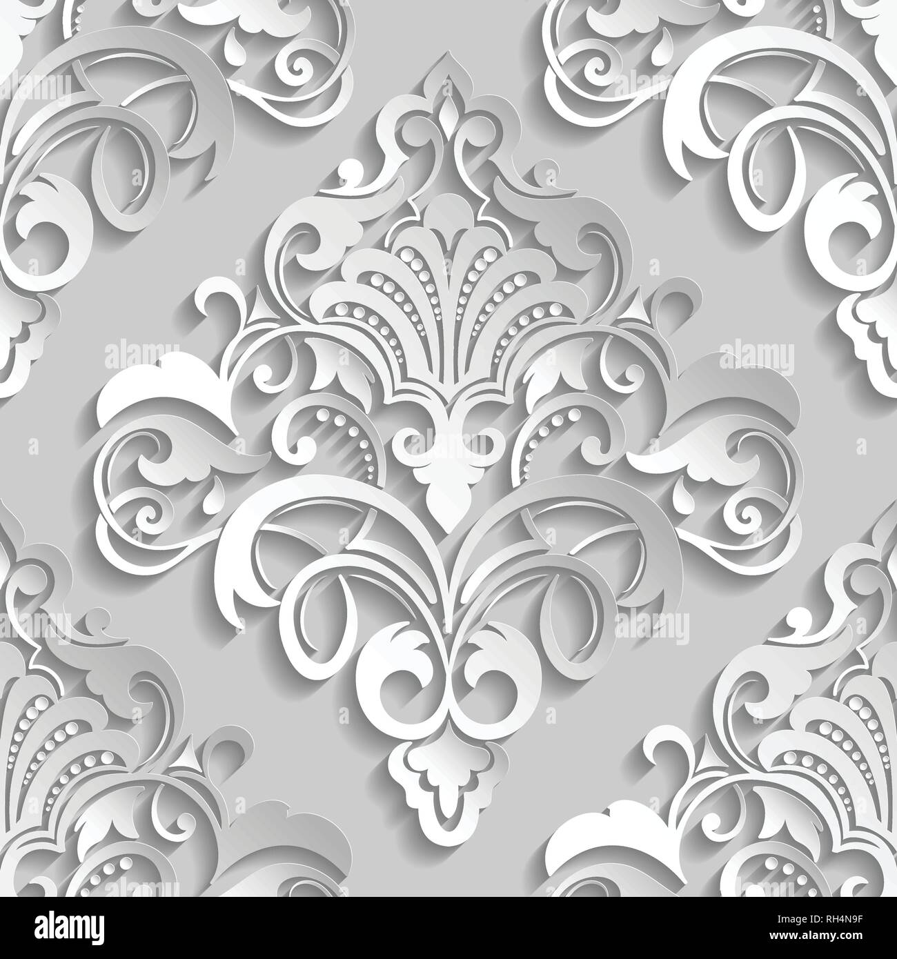 3d White Pattern Paper Cut Vector Damask Seamless Pattern Elegant Luxury Texture For Interior Wallpapers Backgrounds Wall And Floor Tile 3d Pattern Stock Vector Image Art Alamy