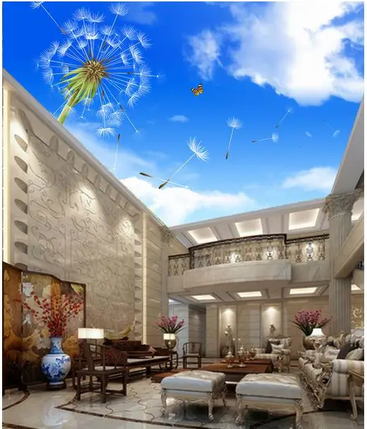 Custom 3d Sky Ceiling Wallpaper Hd Blue Sky White Dandelion
