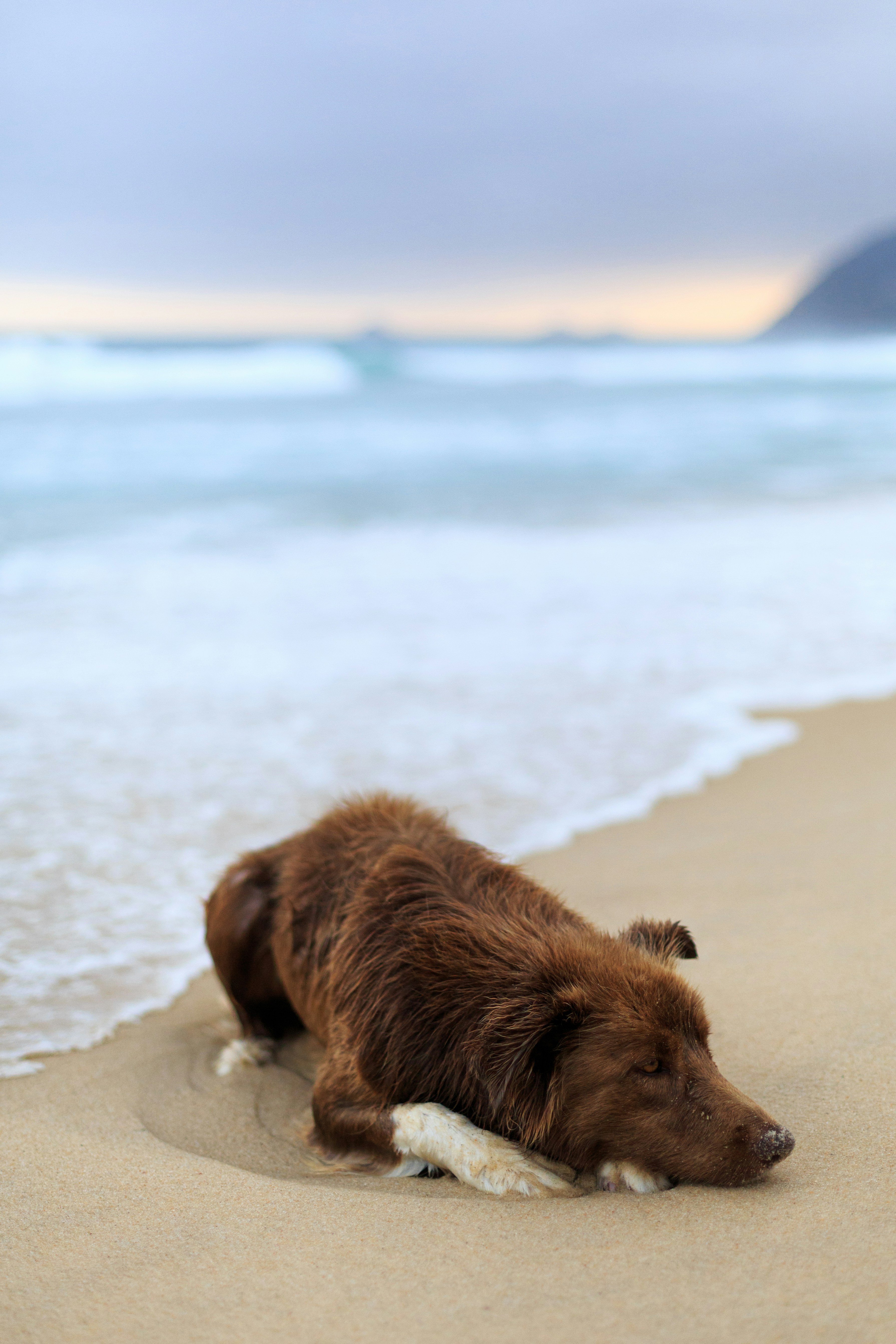 Short Coated Tan Dog Sitting On Seashore Photo Free Animal Image