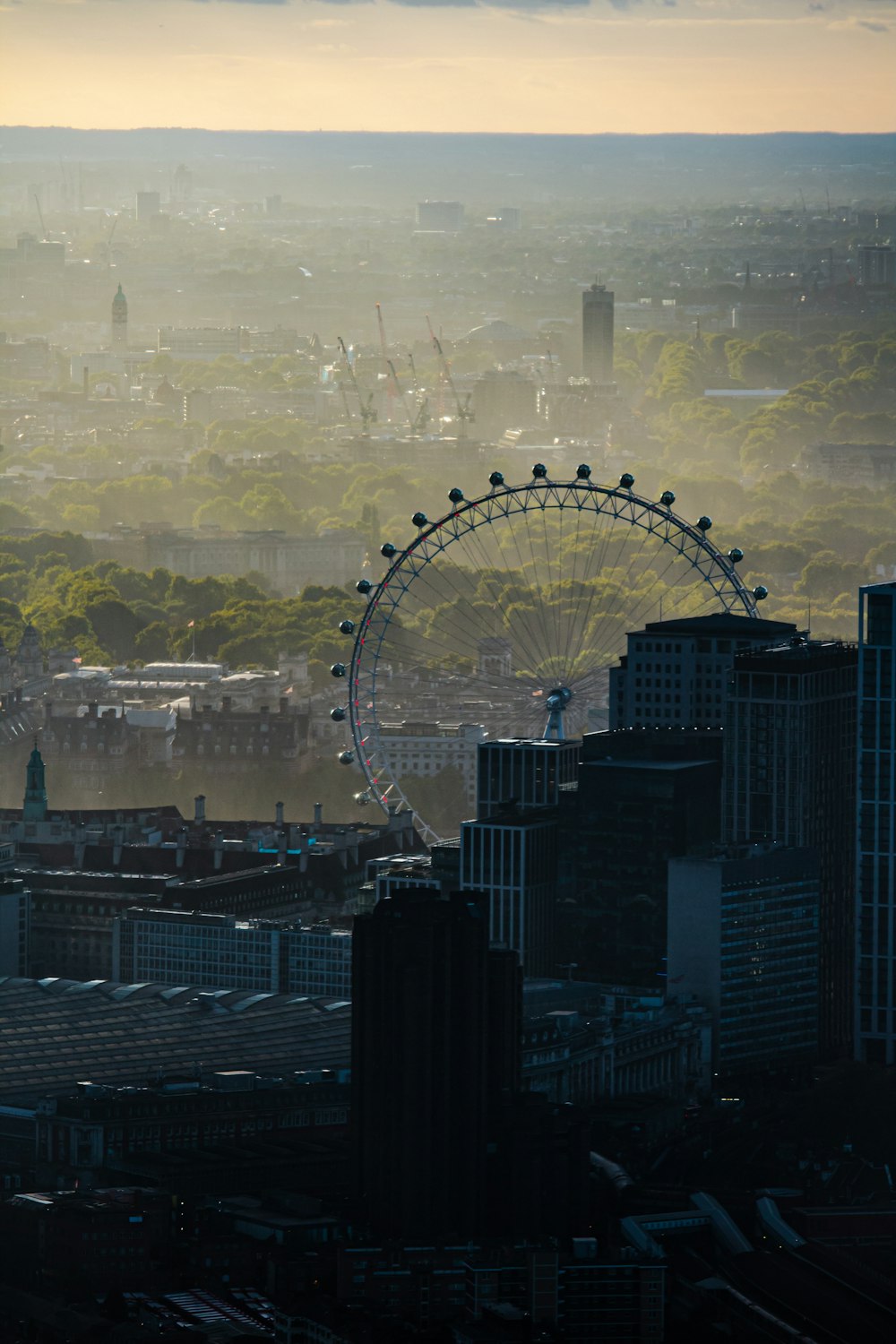 White Ferris Wheel Near Brown Concrete Building Under Blue Sky