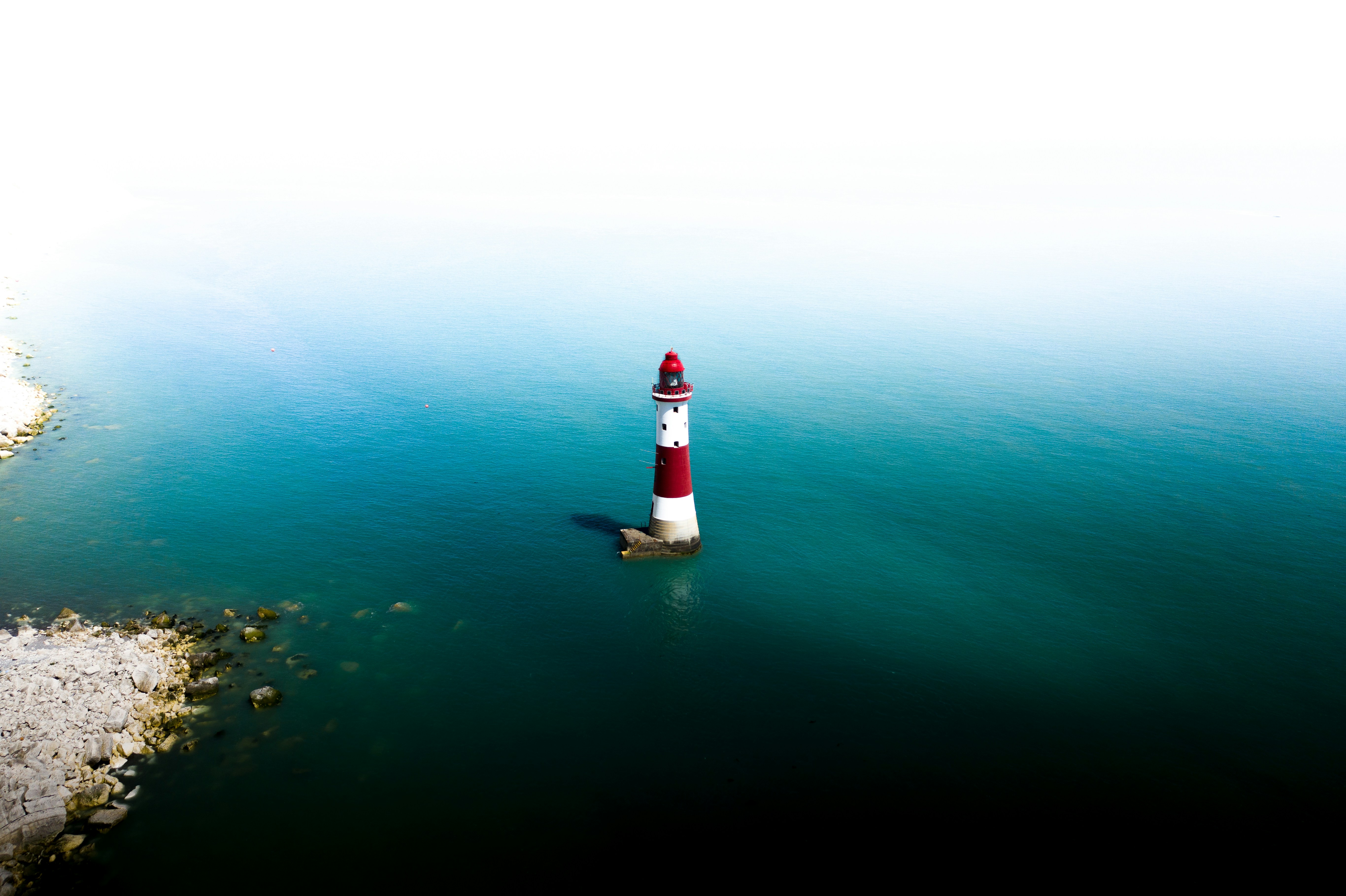 Hd Wallpaper White Lighthouse Facing Ocean Under Blue Sky