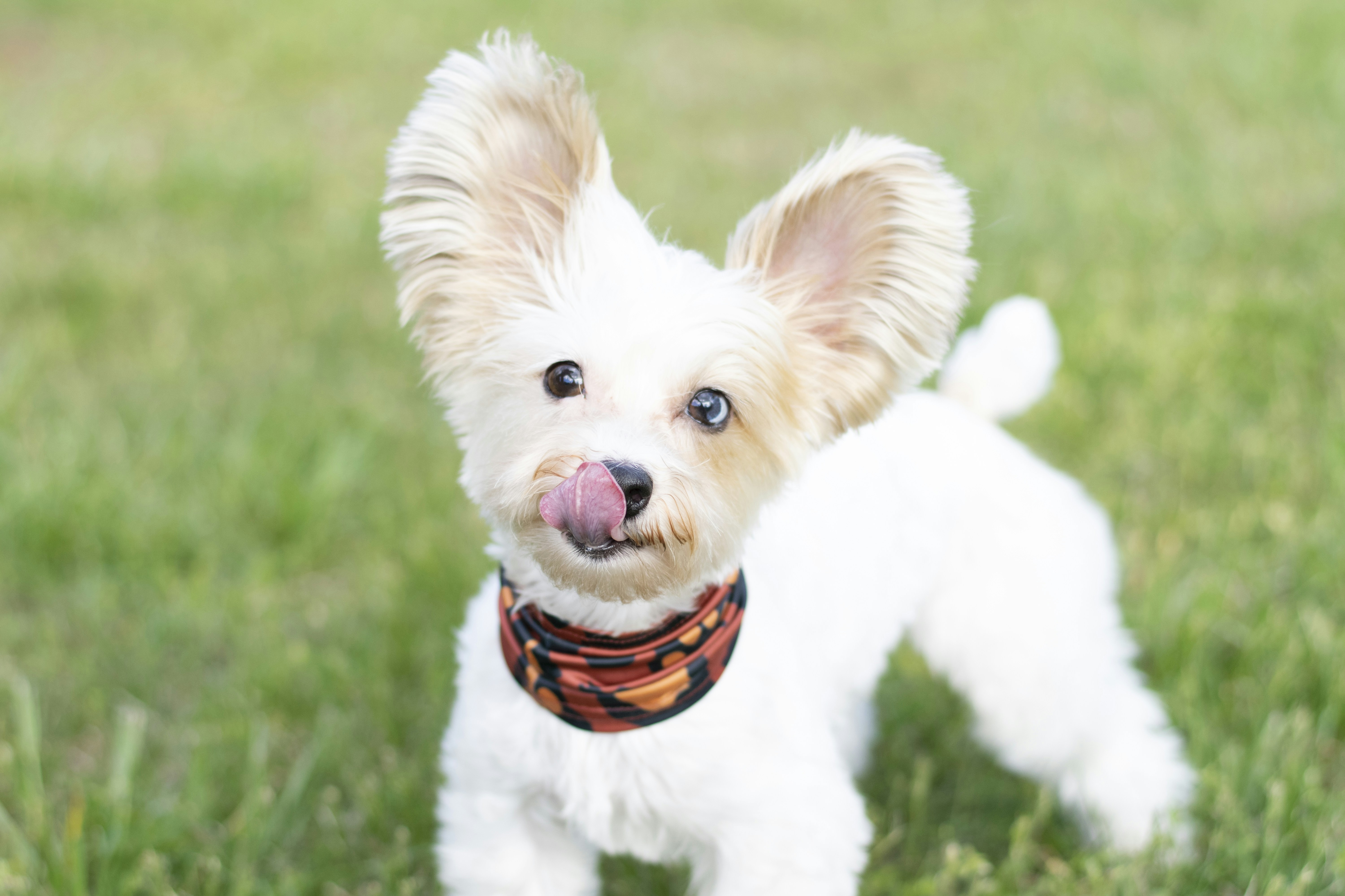 White Long Coated Medium Size Dog Sticking Tongue Out During