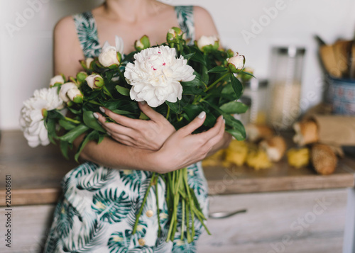 Cute And Lovely Peony Flowers In Women S Hands Many Layered
