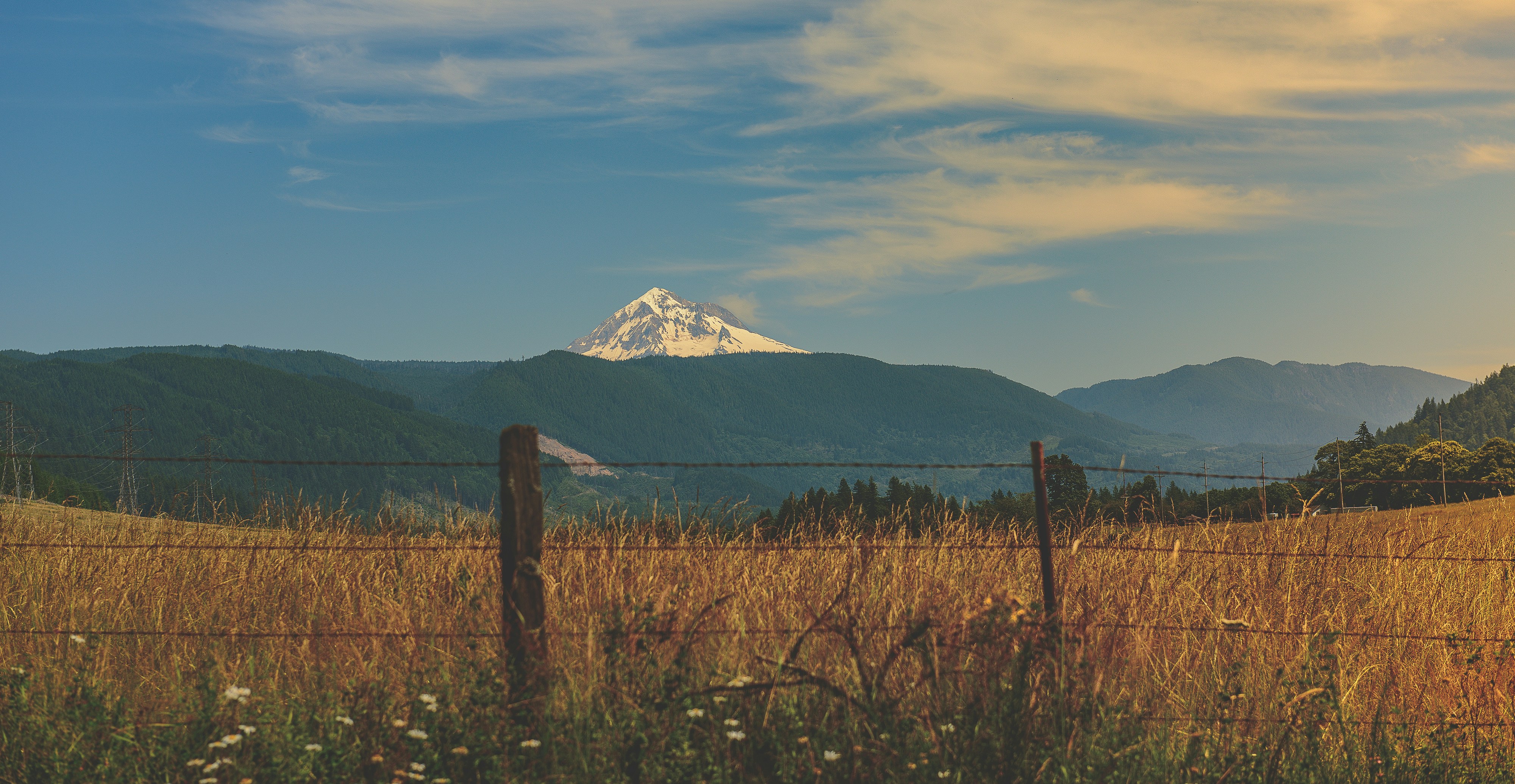 Green Grass Field In Front Of White And Blue Snow Mountain Mt