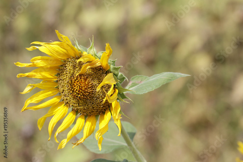 Withered Sunflower Blossom Hanging Orange Golden Leaves Sad Decay
