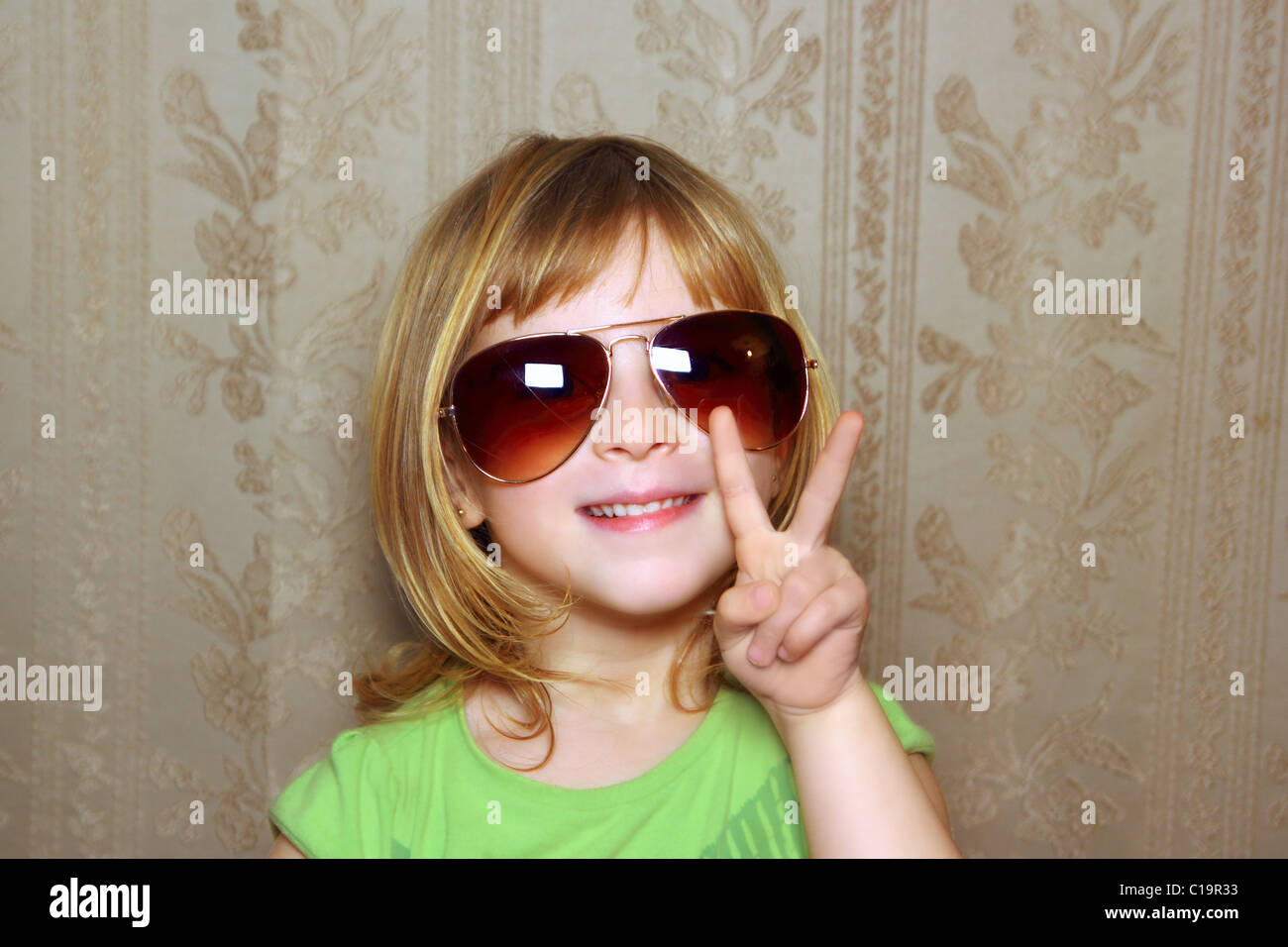 Hand Victory Gesture Little Girl Funny Sunglasses Retro Wallpaper