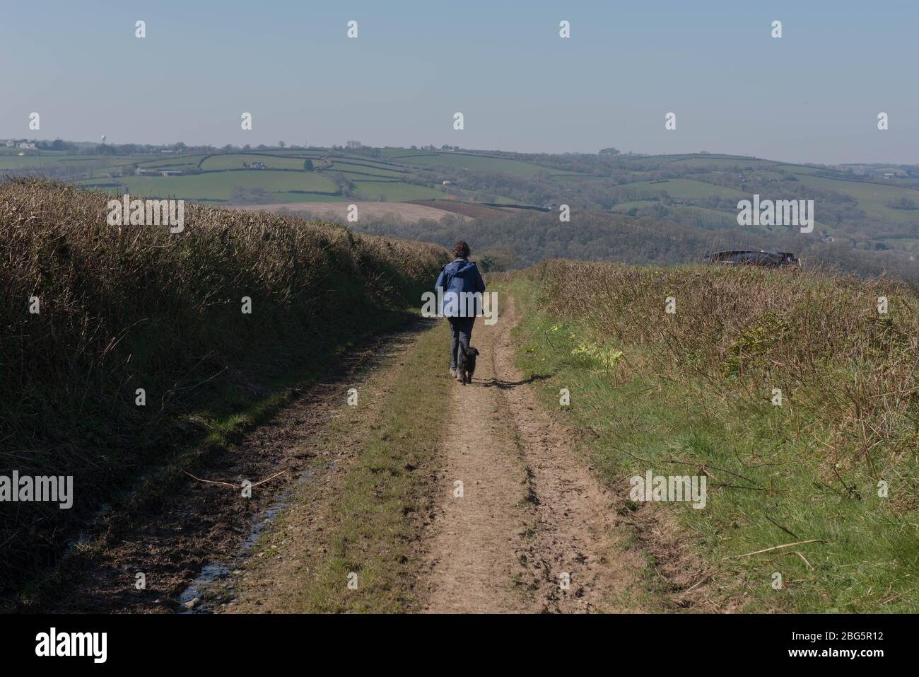 Man Walking On Dirt With Dog Free Stock Photo