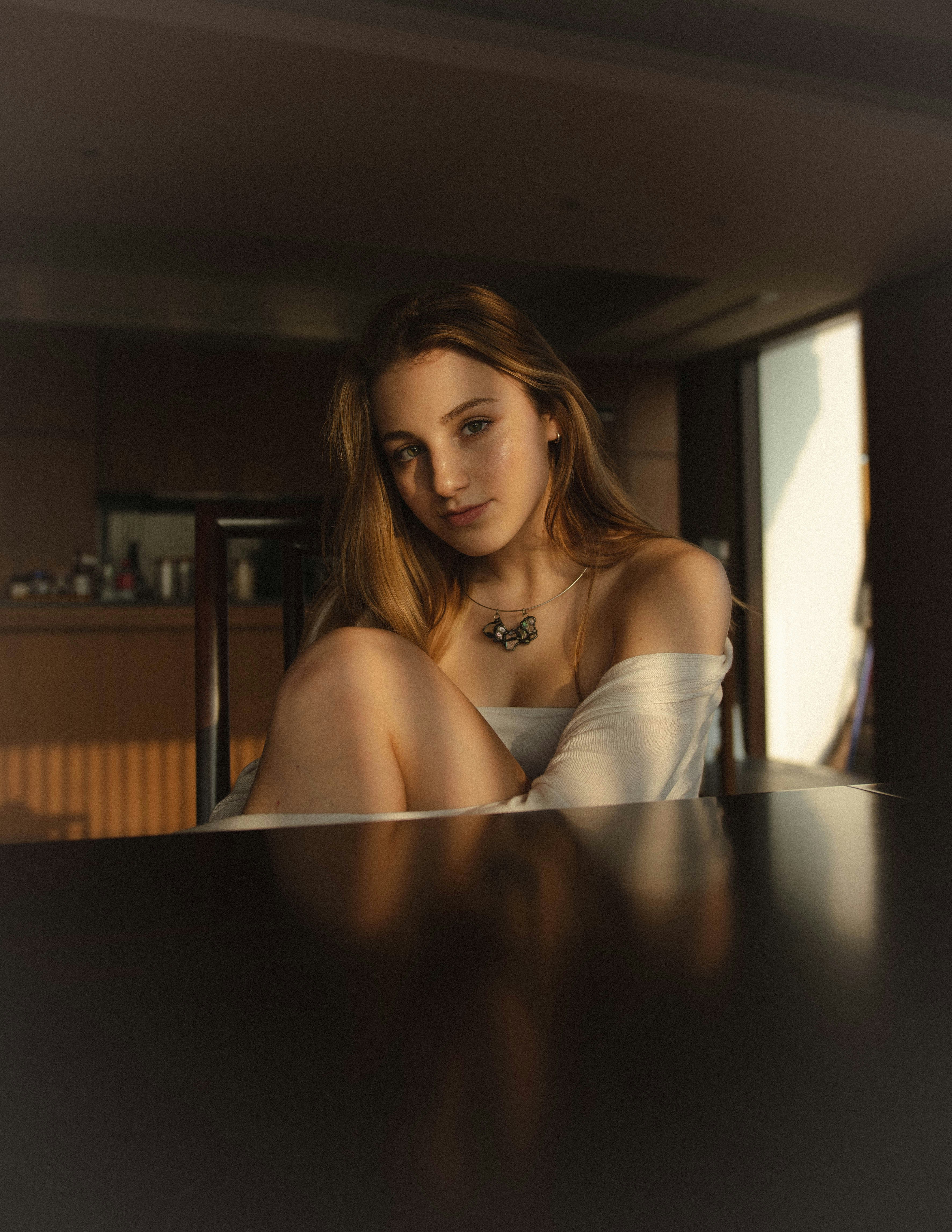 Grayscale Photo Of A Woman Wearing White Off Shoulder Shirt Photo