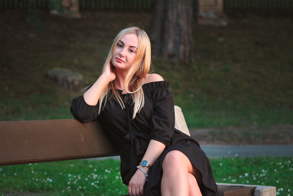 Hd Wallpaper Woman Sitting On Bed Holding Waist Black Dress
