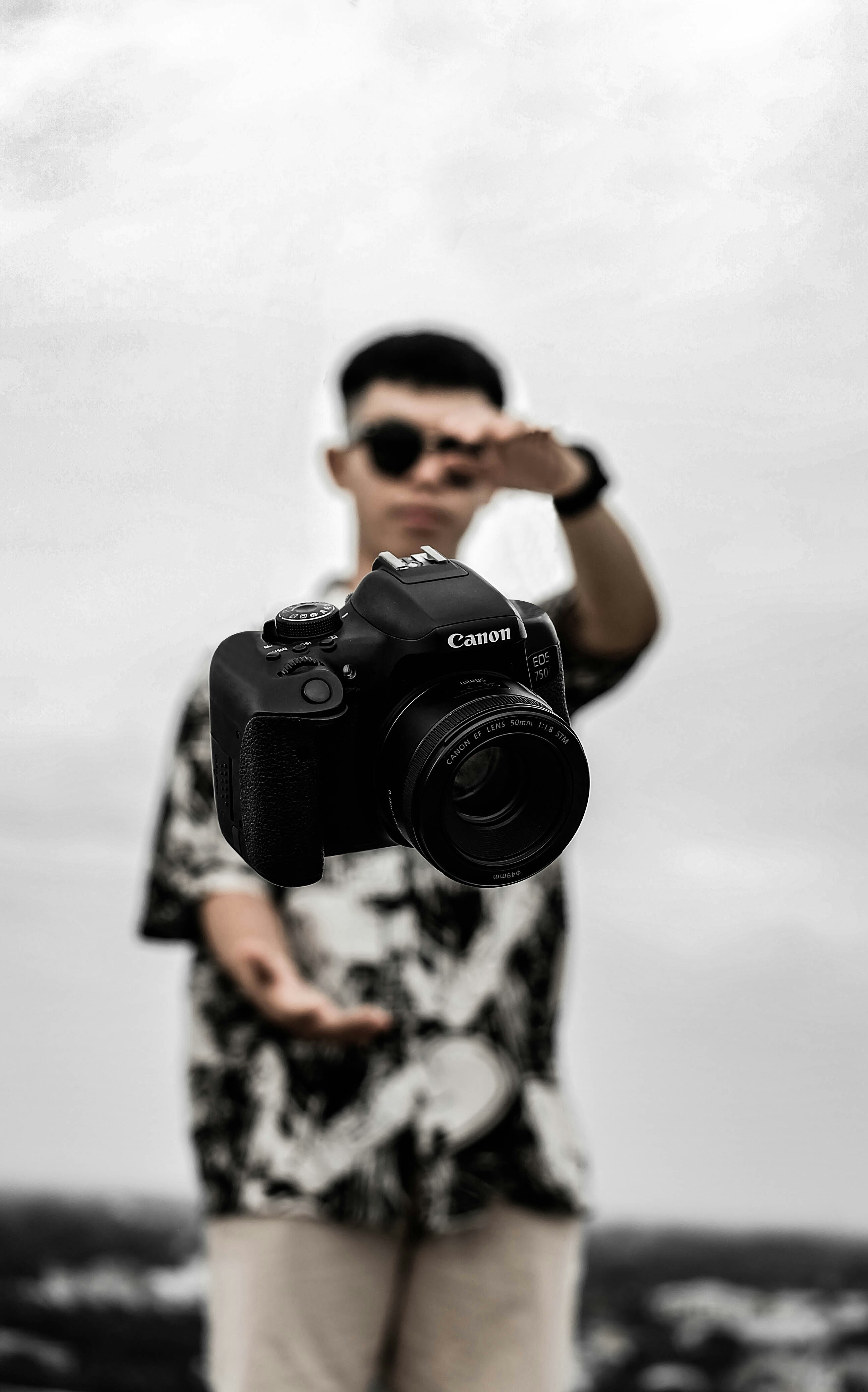 Man In Black T Shirt Holding Black Nikon Dslr Camera Photo Free