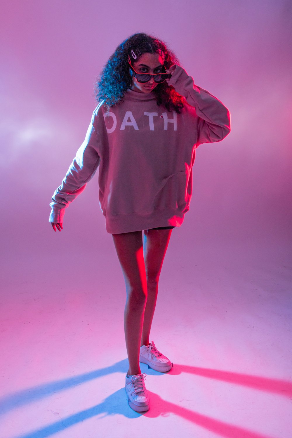 Woman Leaning On Wall Wearing Gray Sweater Photo Free Apparel
