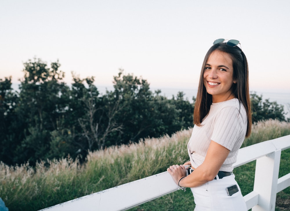 Woman In White Crew Neck Long Sleeved Shirt Standing Beside White Wooden Fence Hd Image Wallpapers