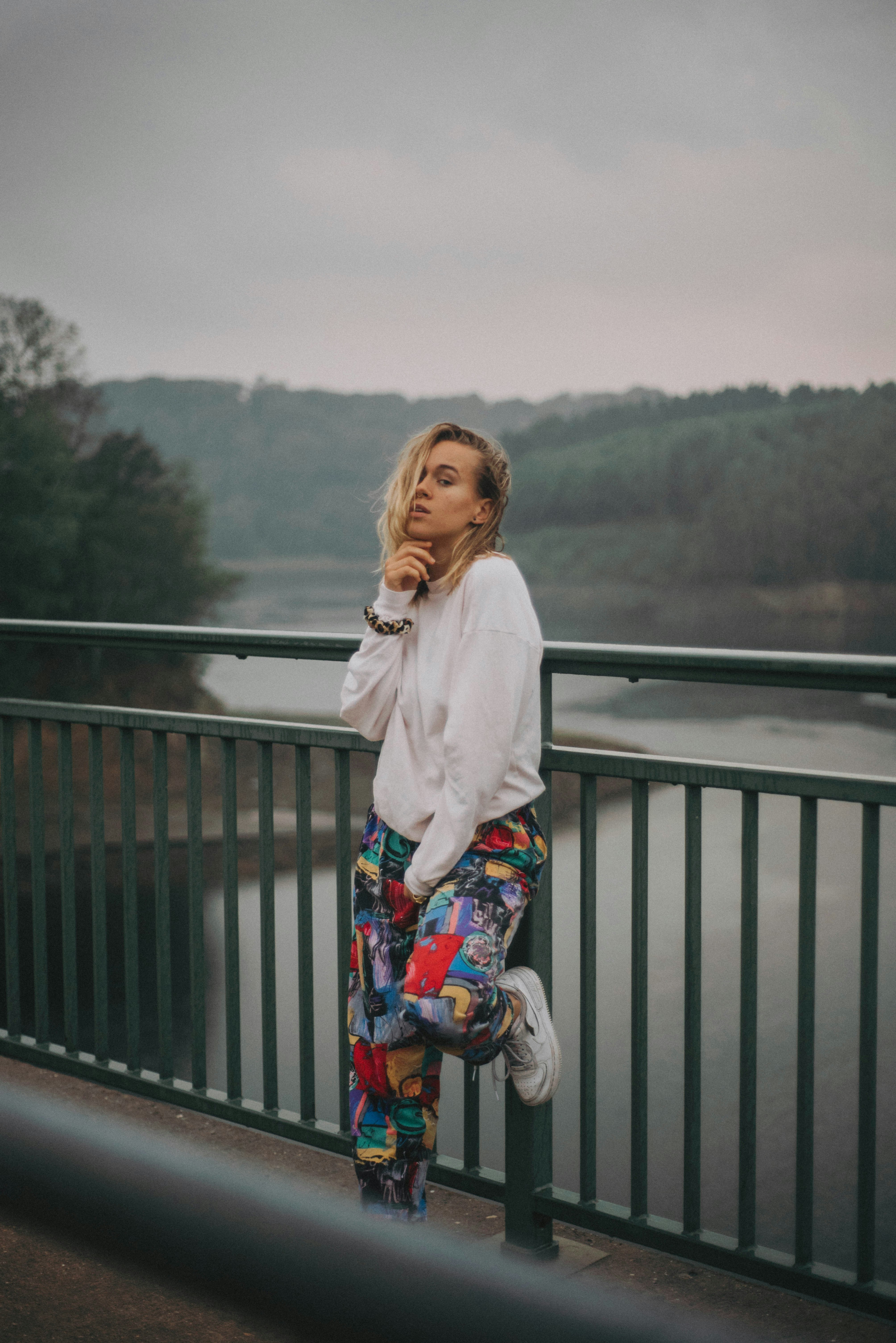Woman Standing Beside Handrail Photo Free Person Image On Unsplash