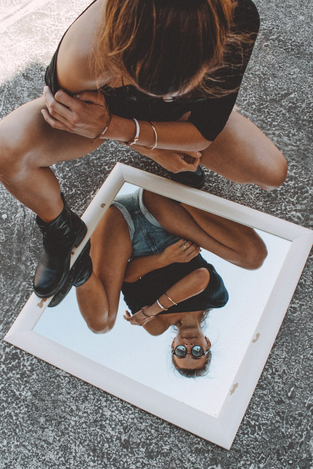 Woman In White And Black Top And Blue Denim Shorts Photography Hd