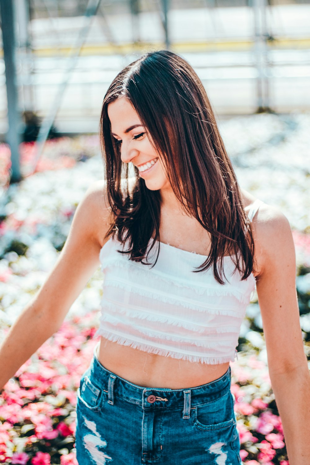Woman In White Tank Top And Blue Denim Shorts Standing On Beach
