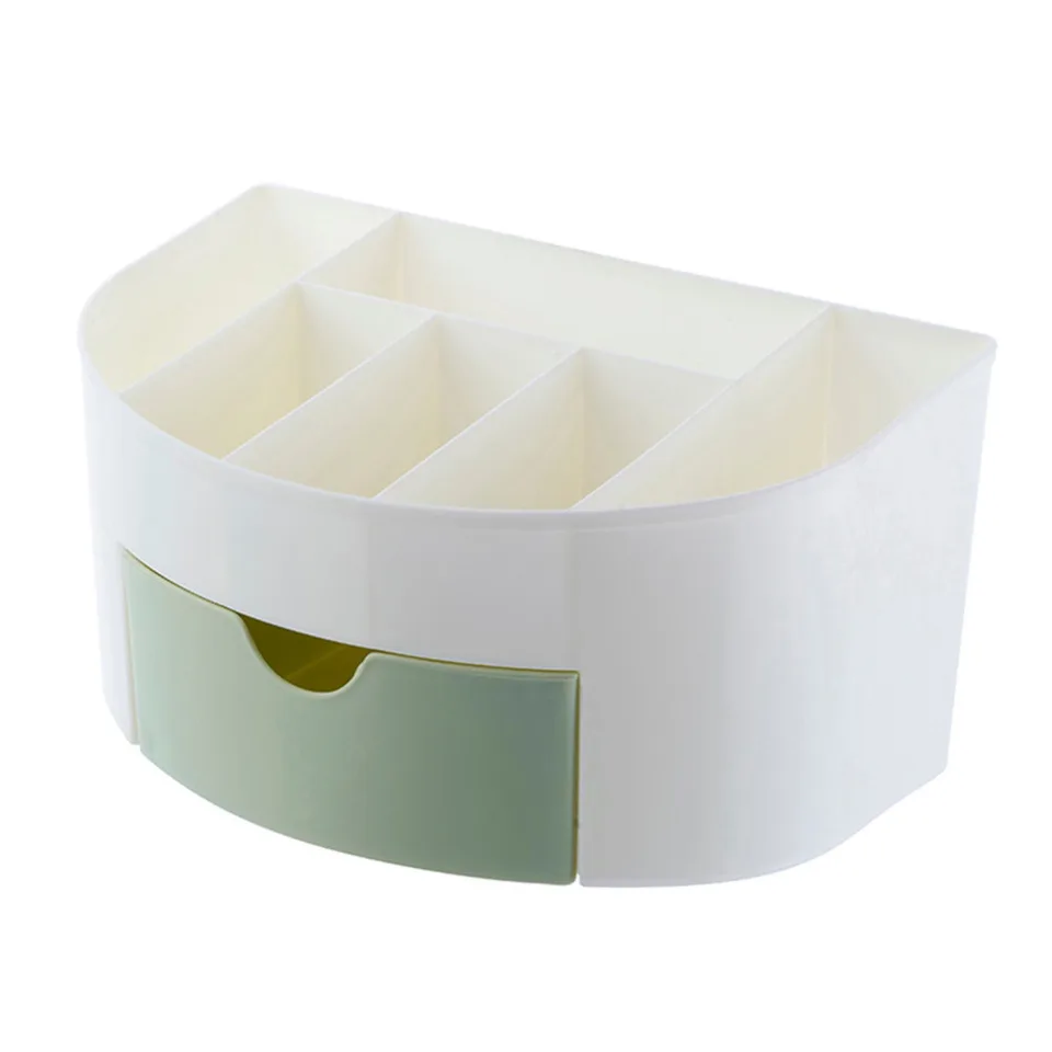Women 6 Grid Desktop Makeup Cosmetic Storage Box Case With Drawer
