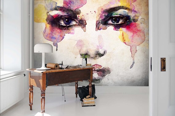3d Dreamy Watercolor Woman S Face Wallpaper Removable Etsy