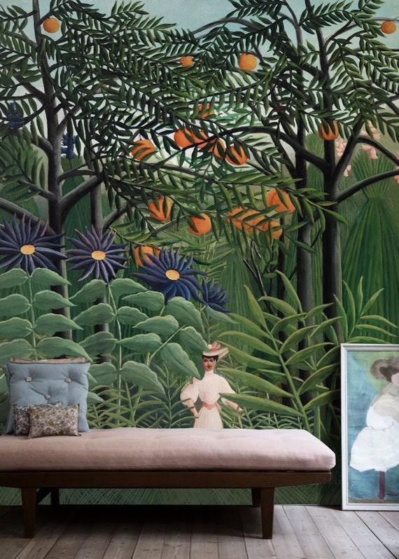 Woman Walking In An Exotic Forest Wall Mural Vintage Oil Etsy