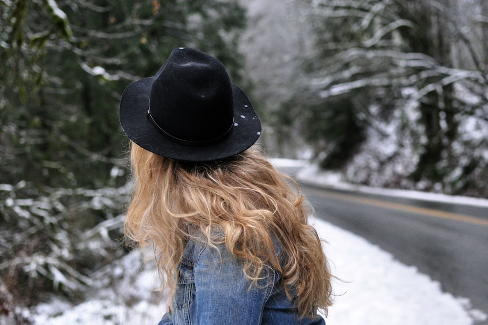 Woman Standing On Open Field Covered In Snow At Daytime Photo