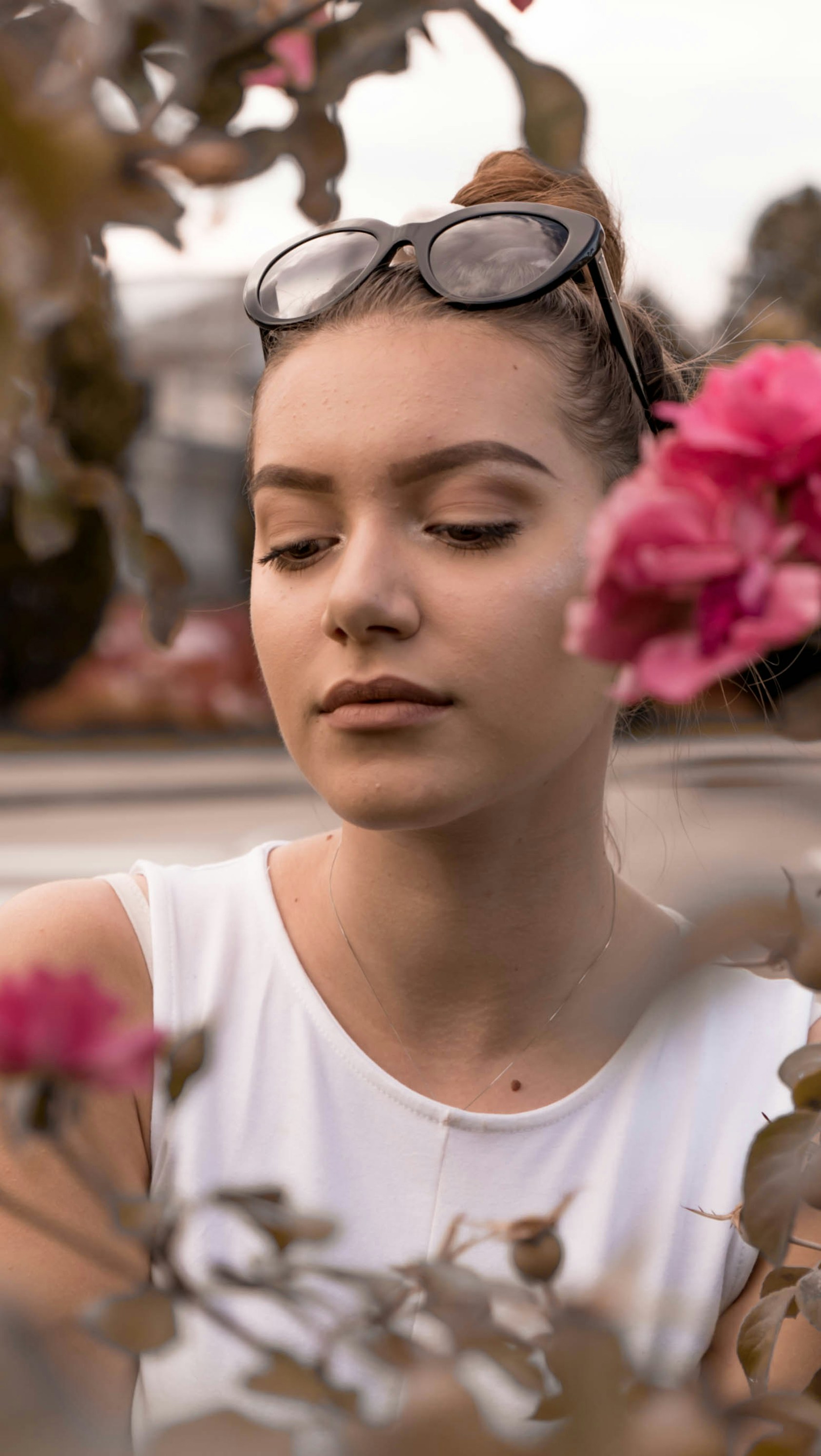 Woman Wearing White Crew Neck Sleeveless Shirt And Pants Hd