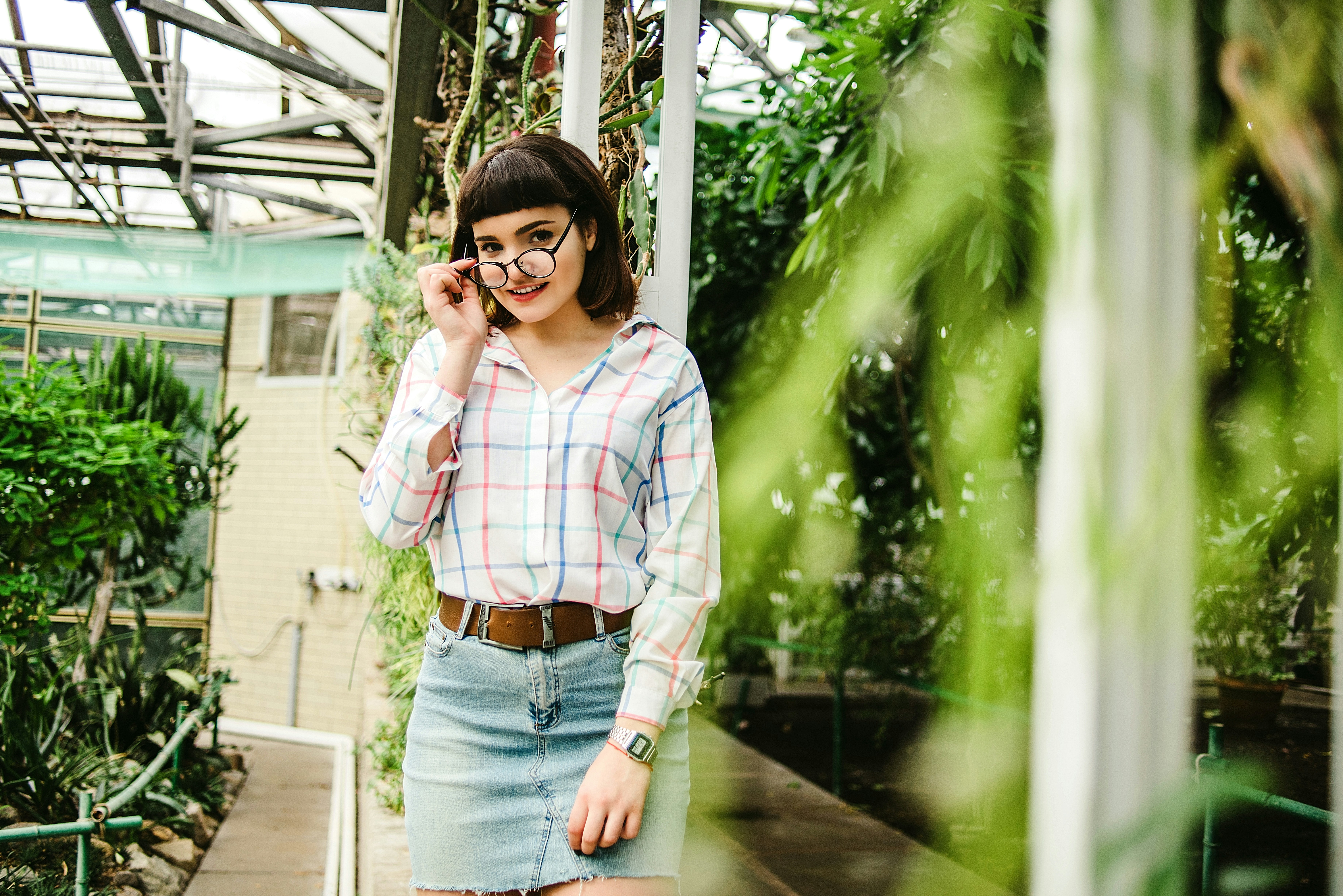 Woman In White And Red Plaid Dress Shirt And Blue Denim Jeans
