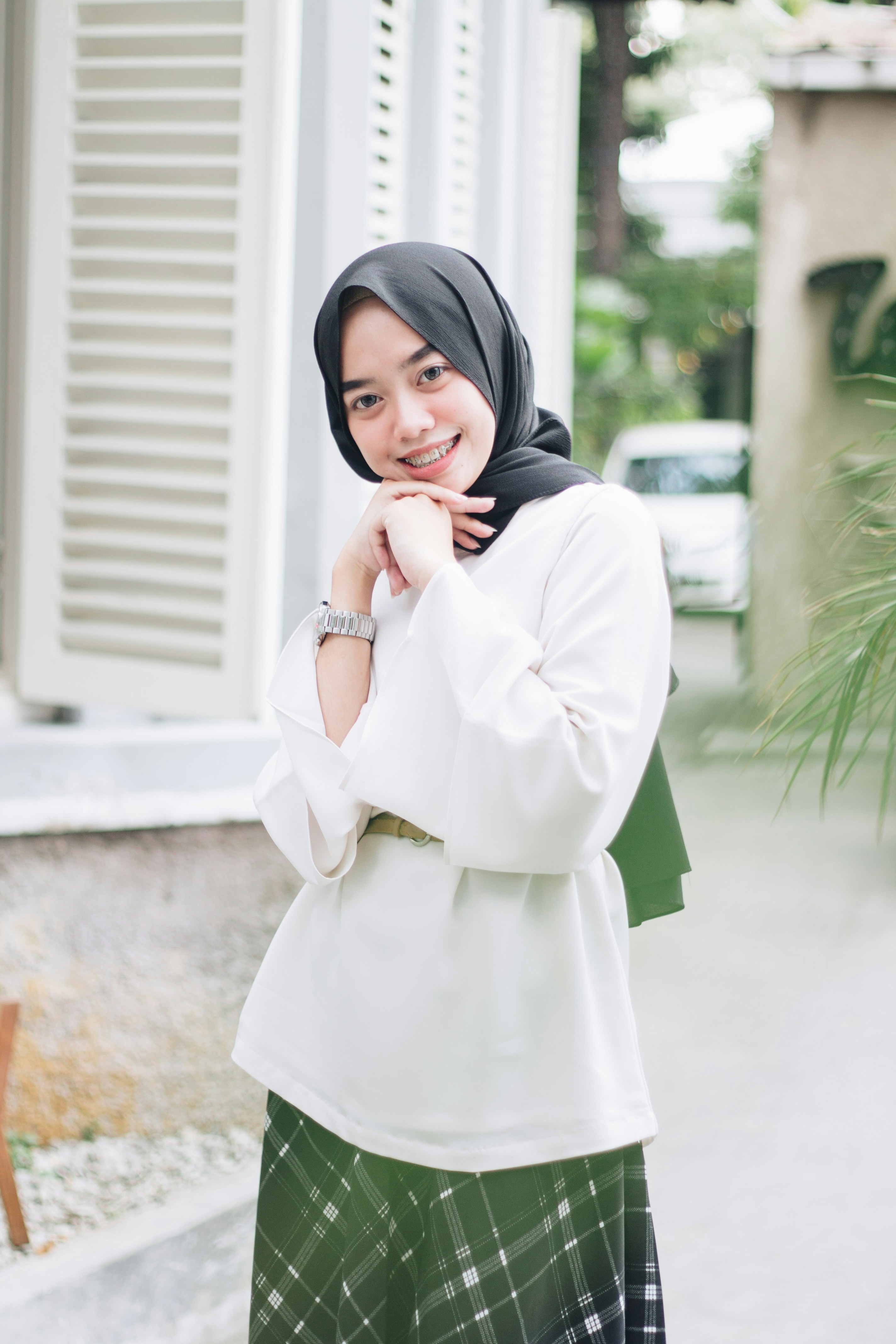 Woman Wearing White Sweater Beige Hijab Headscarf And Eyeglasses Standing On Pathway During Daytime Photo Free Apparel Image On Unsplash