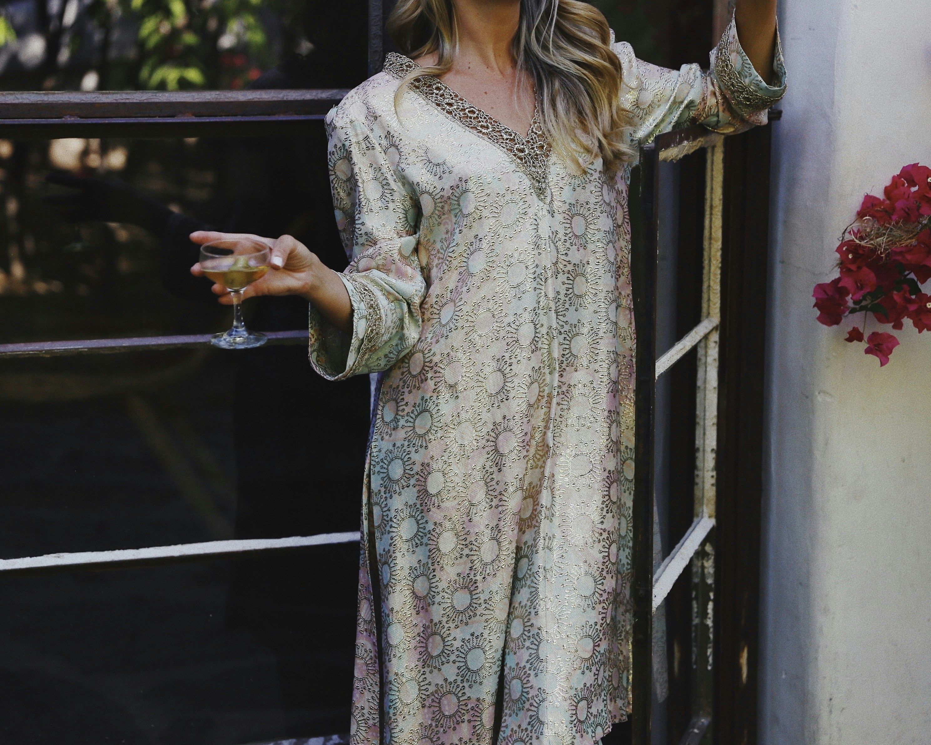Woman Wearing White Sleeved Dress Standing Near Gray Pillar During