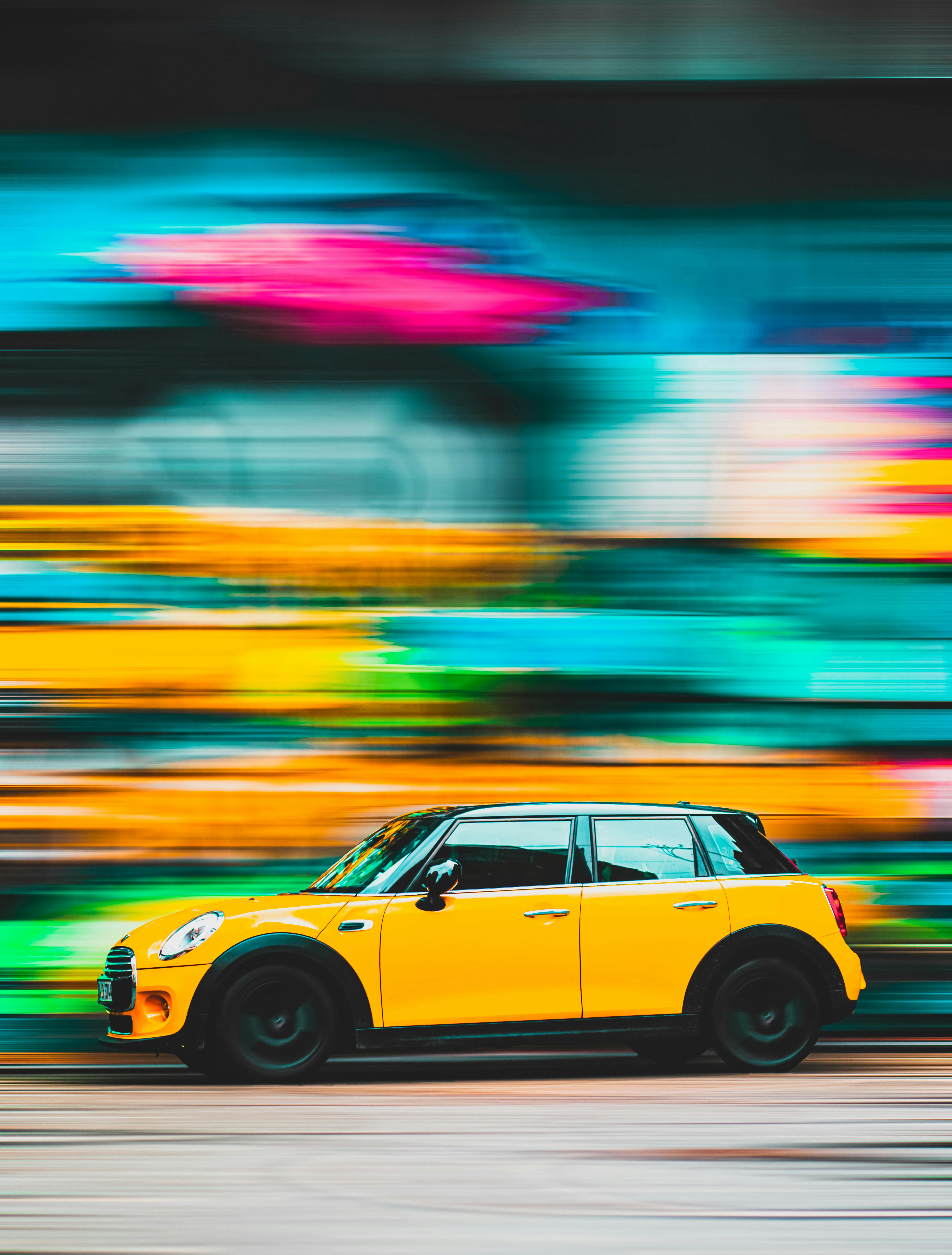 Woman With White Tank Top Inside Classic Multicolored Car Free