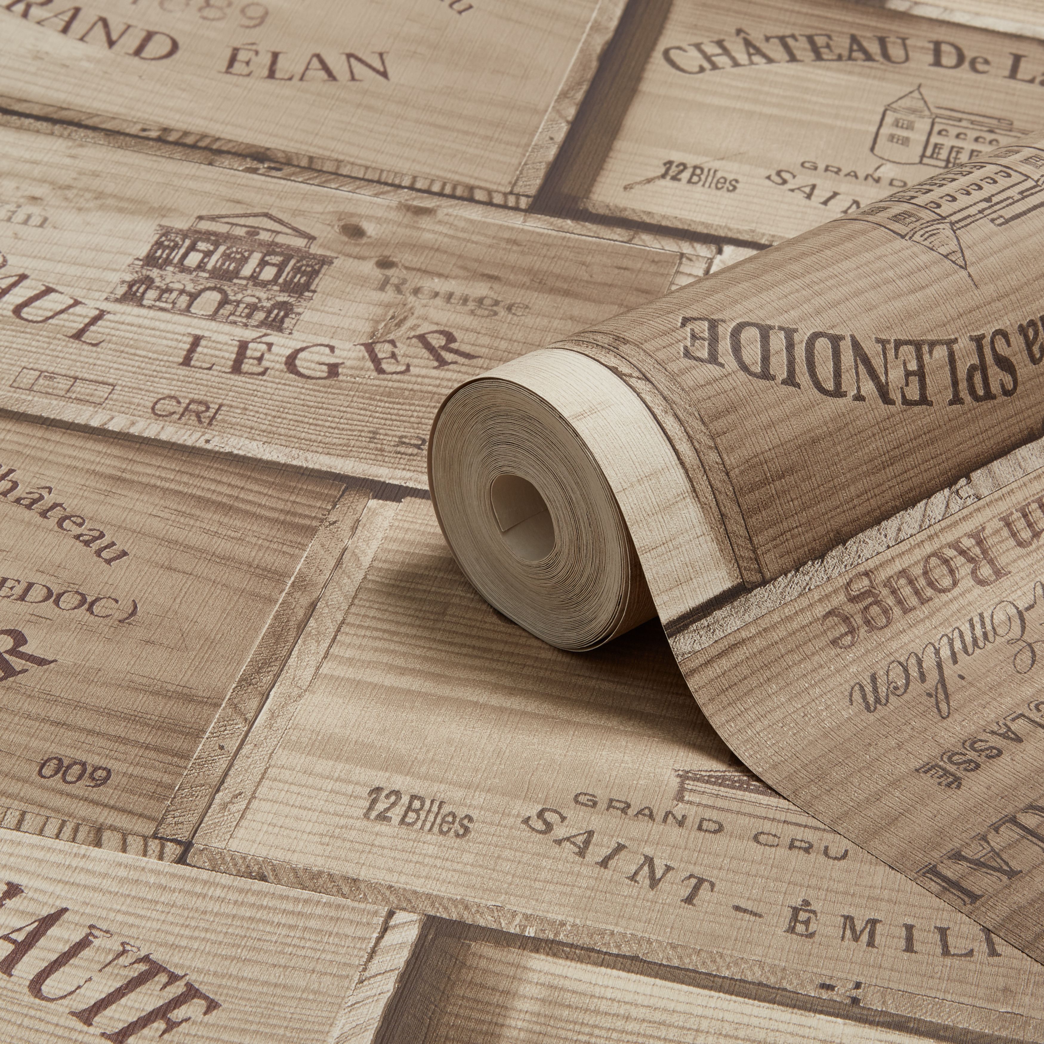 Grandeco Brown Wooden Wine Boxes Embossed Wallpaper Departments
