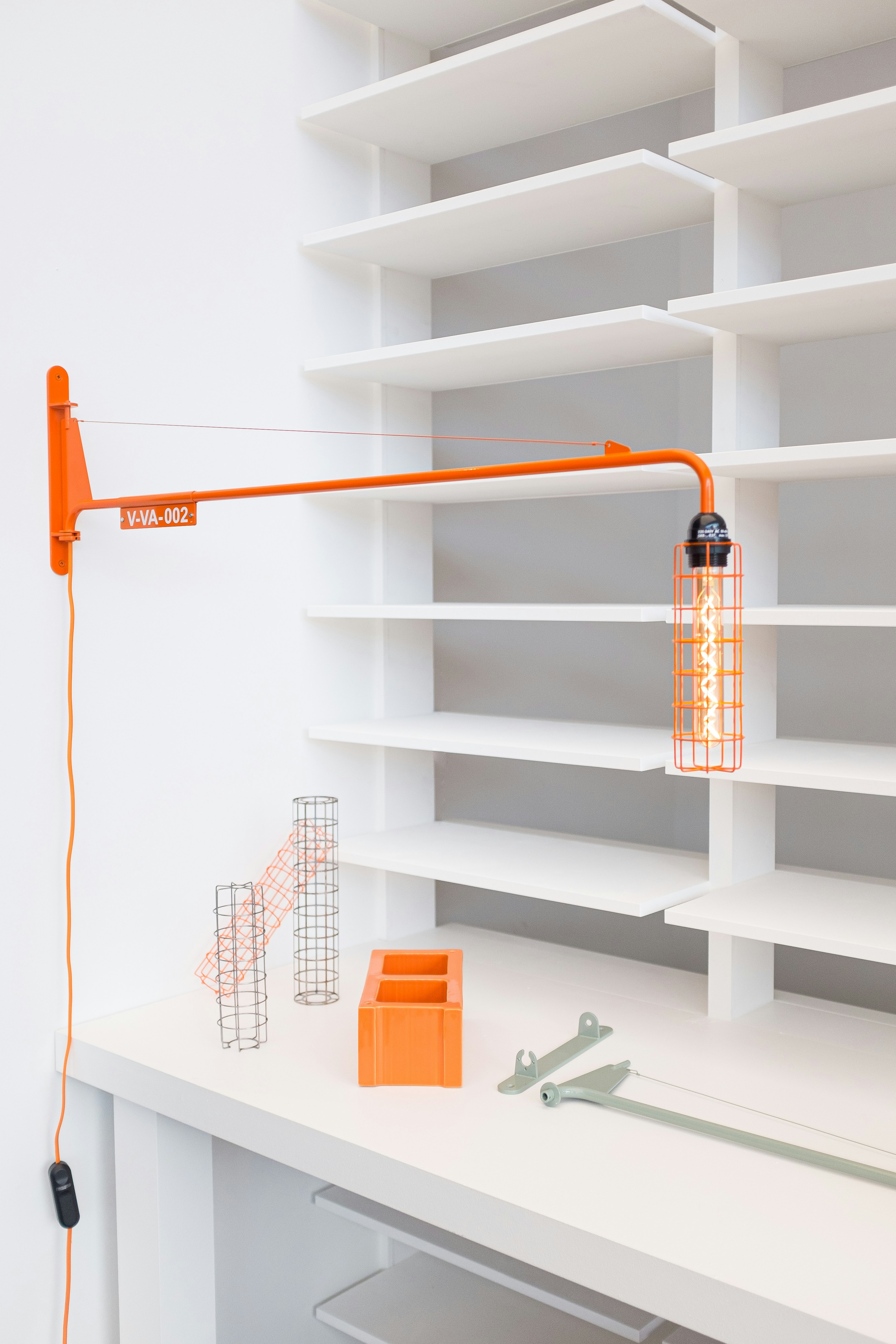 Orange Wall Lamp Near Empty Wall Shelves Photo Free Shelf Image